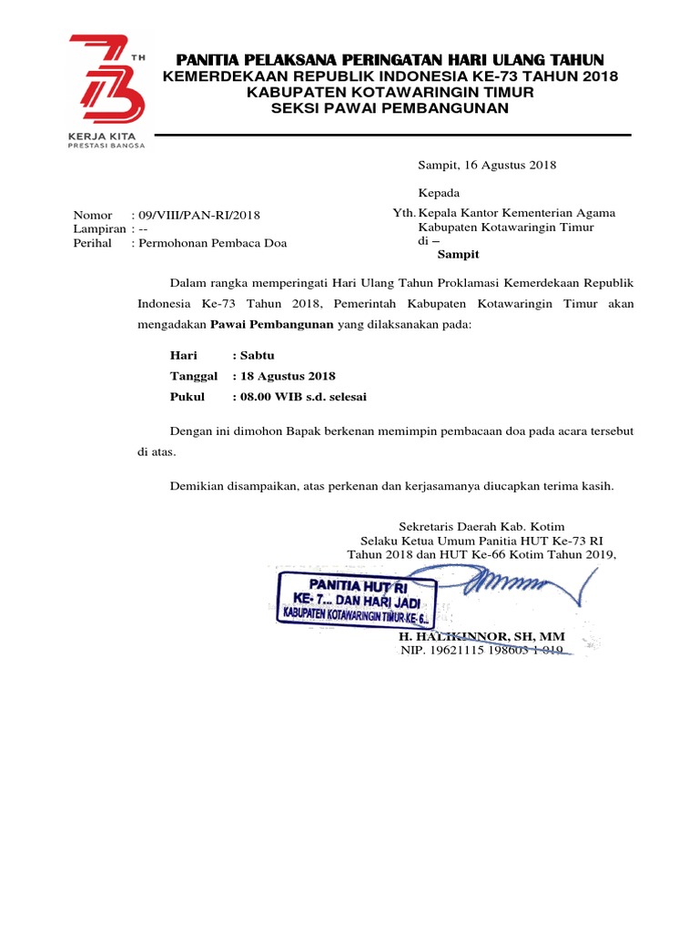 Surat Permohonan Pembaca Doa 2018 Pdf